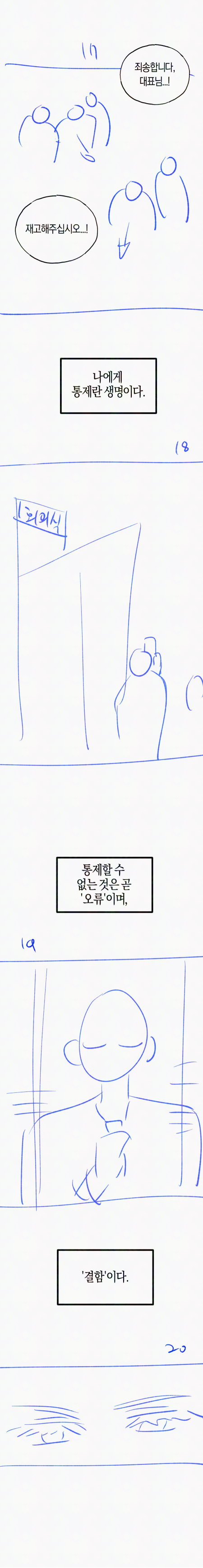 · 1화 내에 빠르게 많은 걸 보여줘야 하는 원고라 해당 부분에 초점 (캐릭터성이나 씬, 관계성 등)